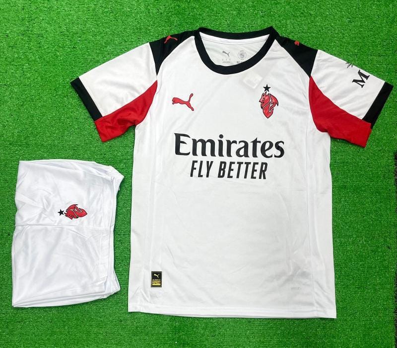 Classic White Base: The jersey features AC Milan’s traditional white color, symbolizing the club’s identity.