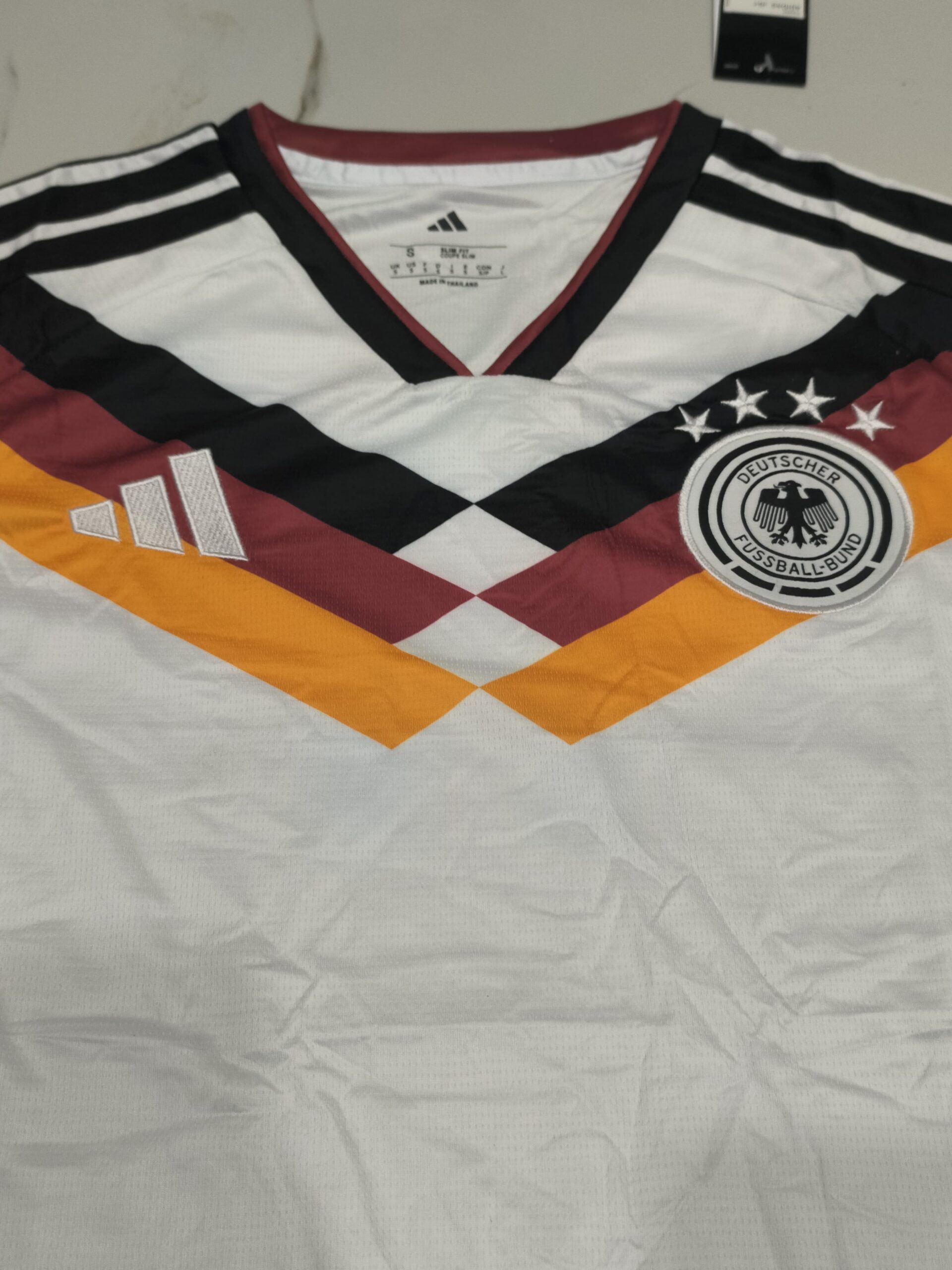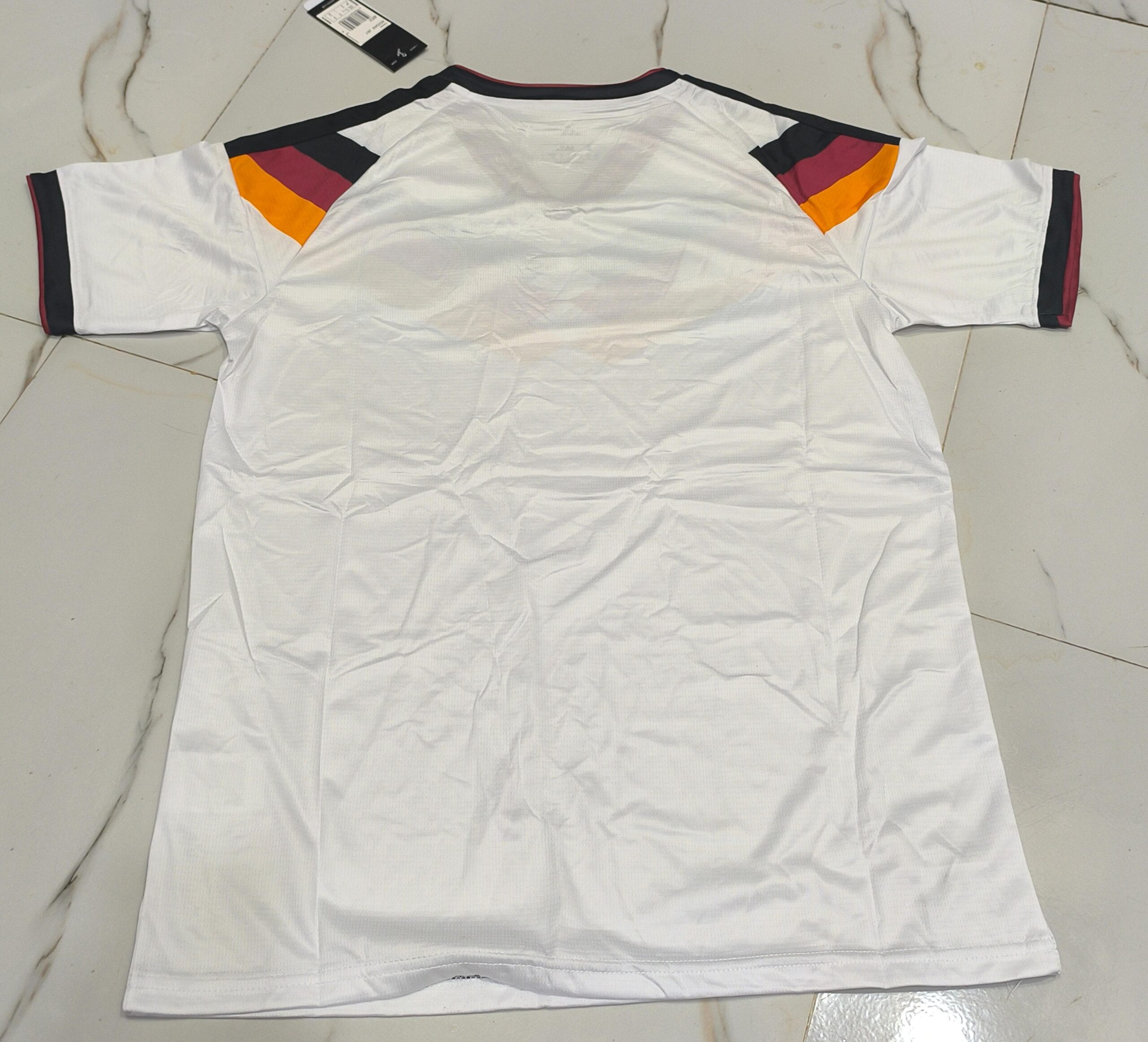 Iconic white base paired with bold black shoulders — a hallmark of Germany’s home identity