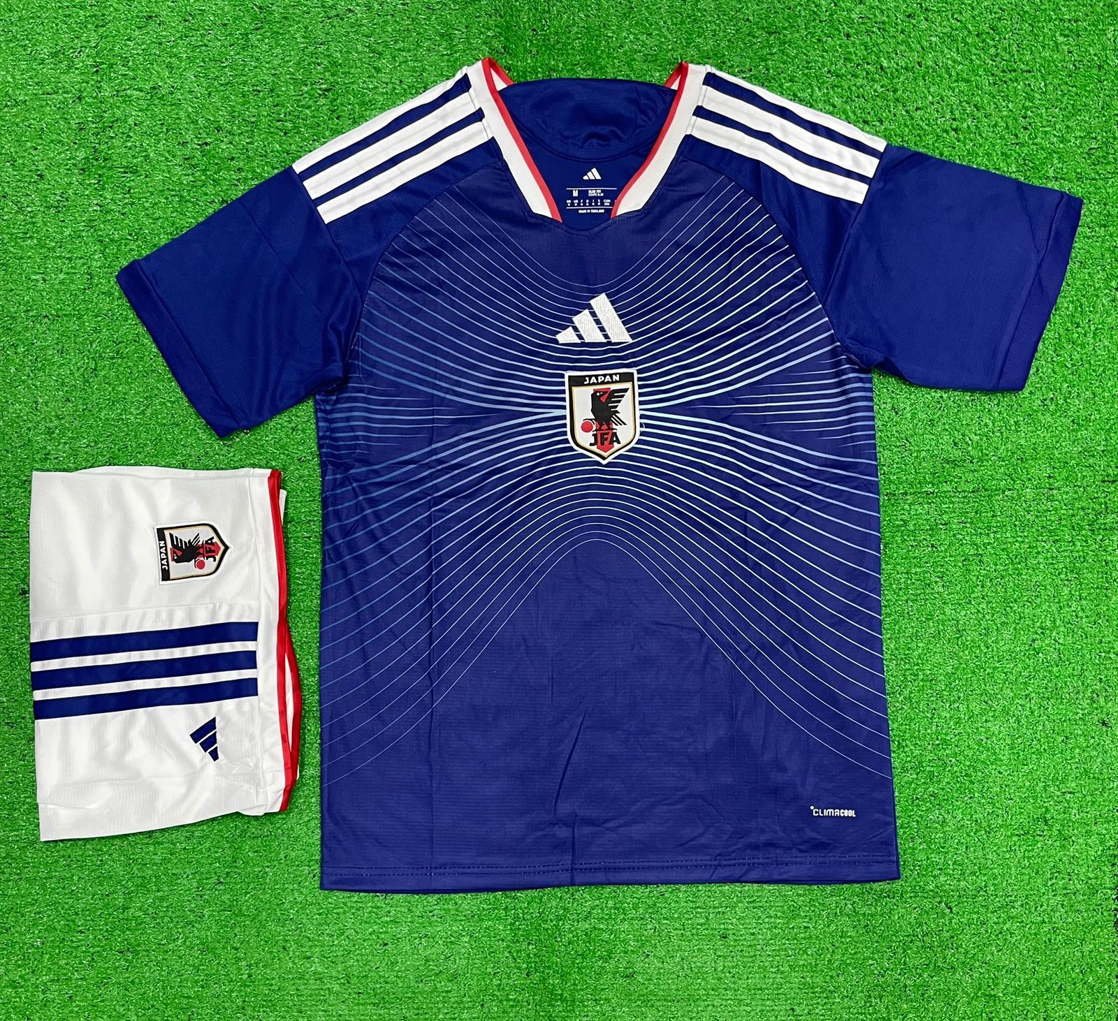 The 2026 home design honors Japan’s iconic football identity. First, a classic deep blue base creates a calm and confident appearance. Then, subtle tonal patterns add depth inspired by traditional Japanese elements. Additionally, clean red accents reflect the national flag with balance and precision. Altogether, the look feels elegant, modern, and unmistakably Japanese.
