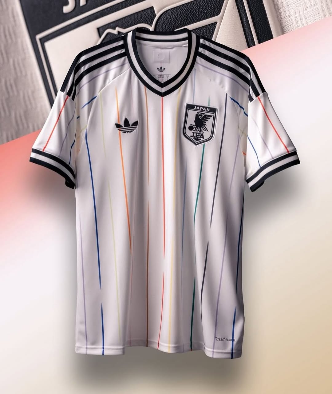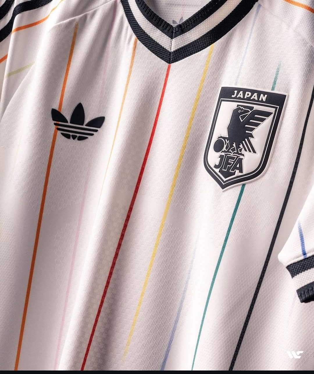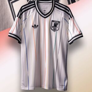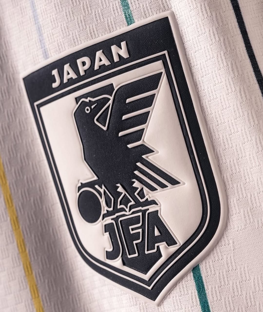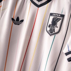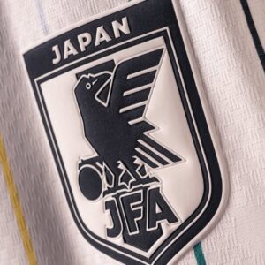 A clean light base—white or silver—defines the away identity with a modern and sharp look. Meanwhile, deep blue accents add contrast and reflect Japan’s football heritage. Subtle textures inspired by traditional Japanese patterns enhance the design. Altogether, the jersey feels sleek, minimal, and highly refined.