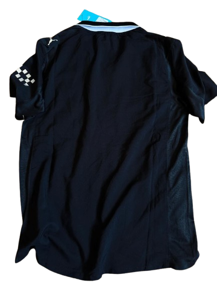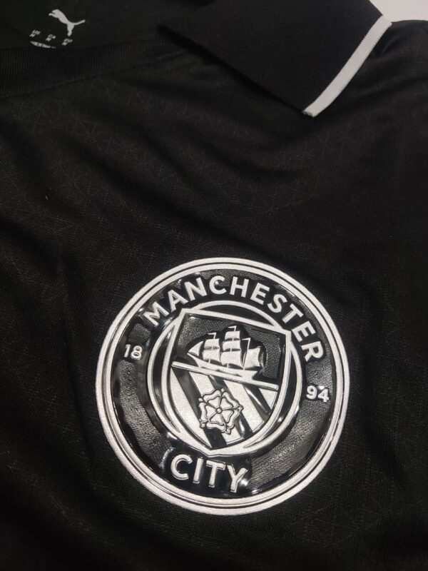 This away jersey captures Manchester City’s fearless spirit with a striking design. The mix of black and sky blue delivers a bold look that works on the pitch and in everyday streetwear.