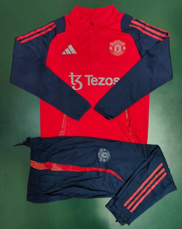 Manchester United’s red training suit for the 2024/25 season is a bold and dynamic design! The suit features a deep red base with embroidered Manchester United crest on the chest. It’s crafted from high-quality materials to ensure durability and comfort during training sessions.The suit includes Adidas Aeroready technology, which wicks sweat away from the skin for breathability and comfort. It’s designed with a slim fit to provide a streamlined look and optimal performance.