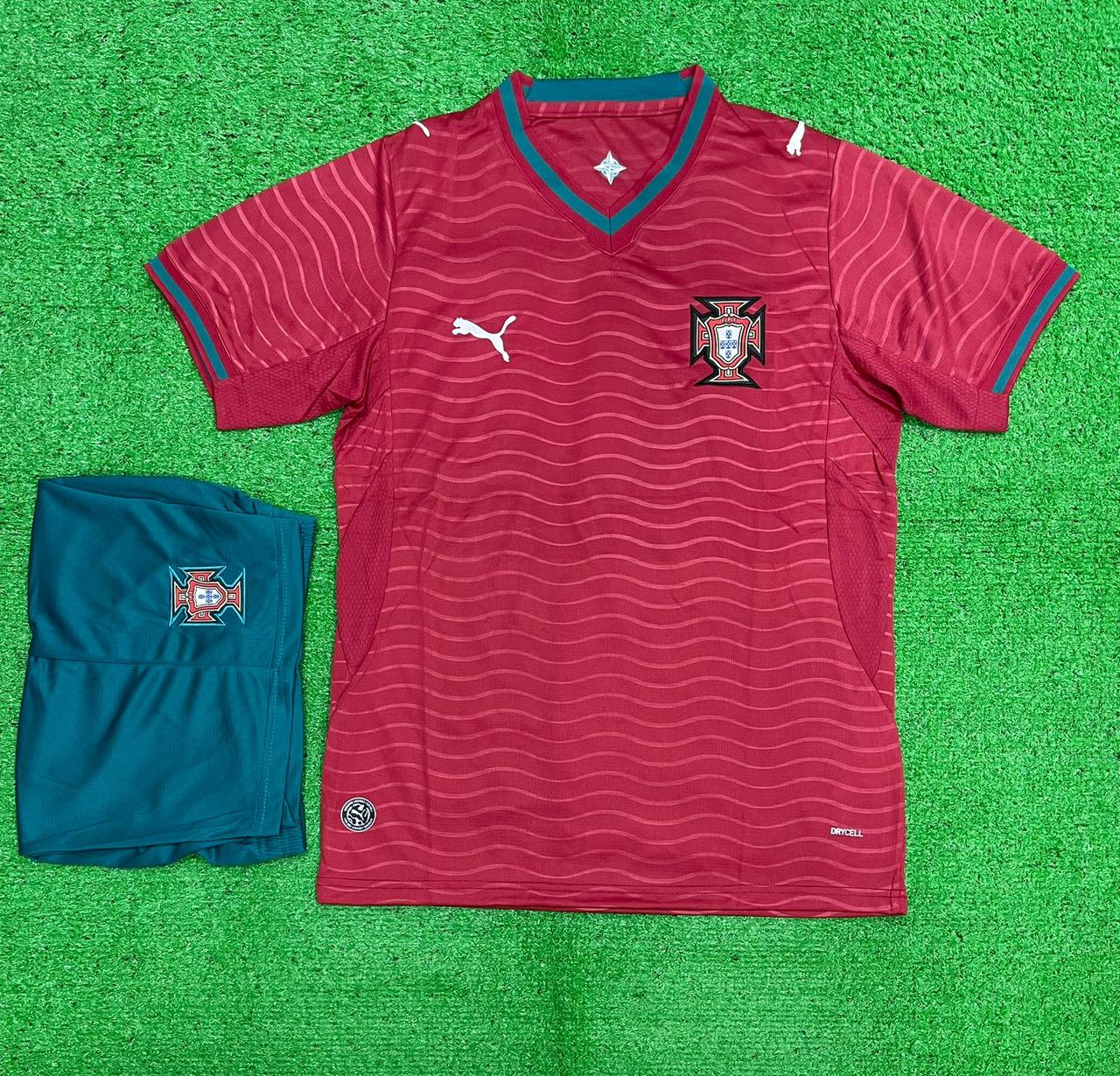 The 2026 home design reflects Portugal’s iconic football identity. First, a rich deep red base creates a bold and instantly recognizable look. Then, subtle tonal detailing adds depth while maintaining a clean appearance. Additionally, green and gold accents highlight national colors with elegance. Altogether, the design feels proud, modern, and unmistakably Portuguese.