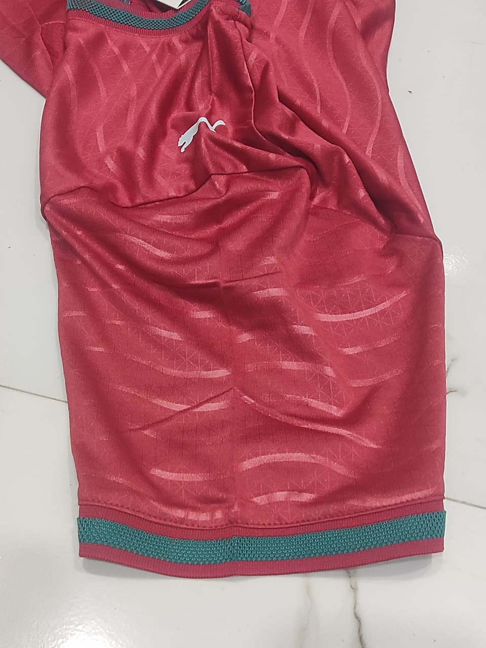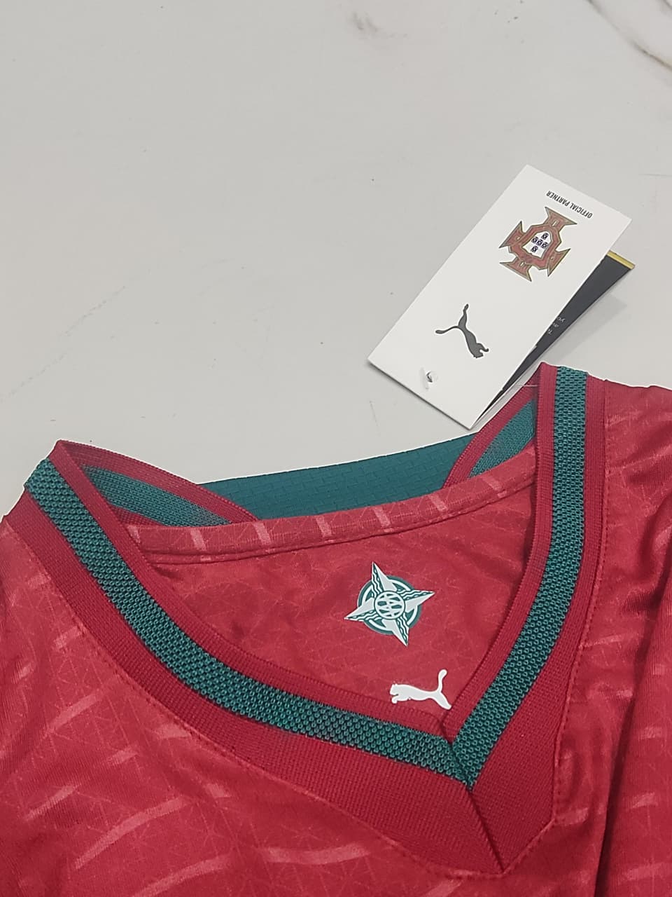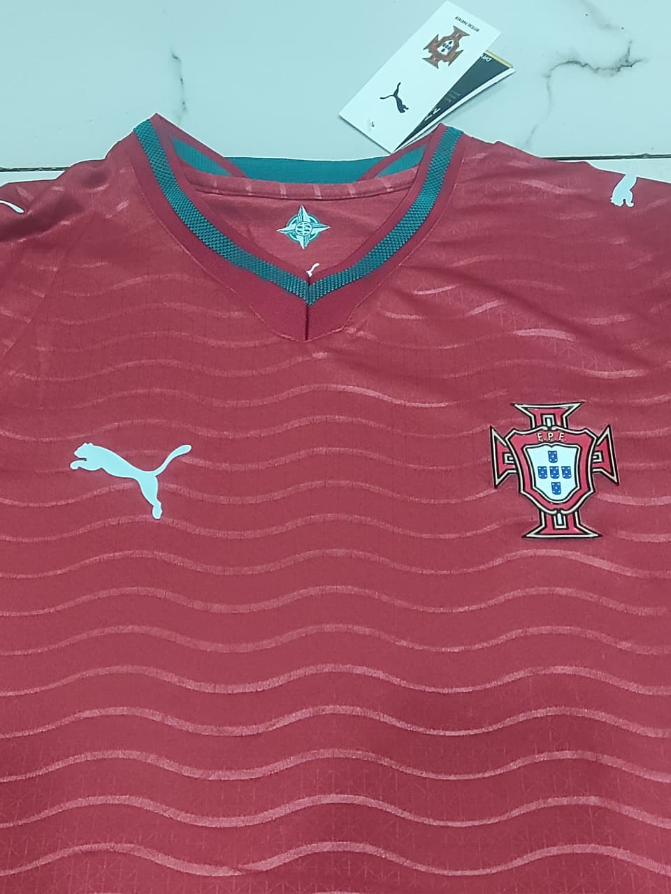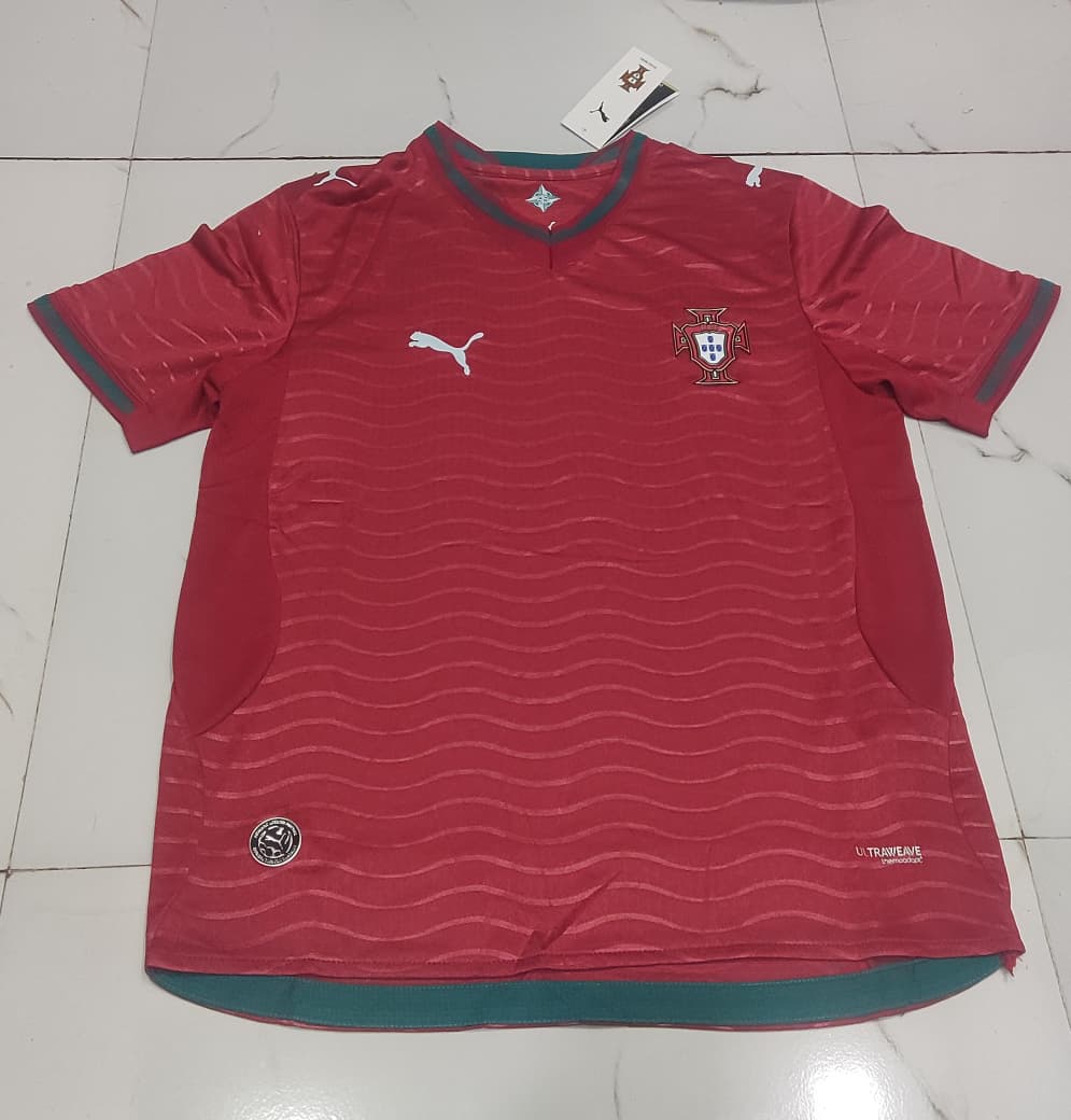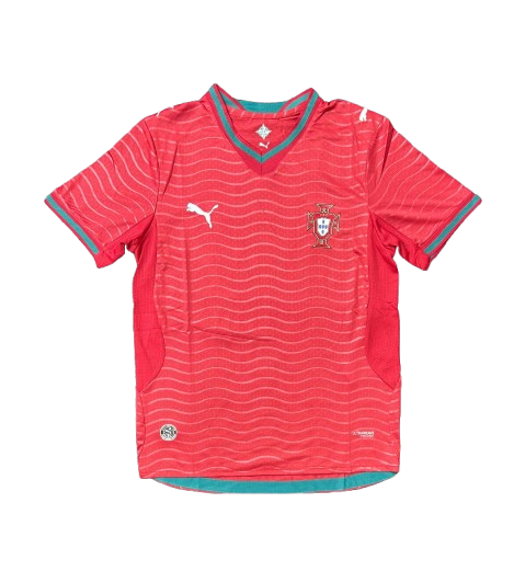 Step into the spirit of Portuguese football with the Portugal Home World Cup 2026 Player Version Jersey. This edition brings a sharp blend of national pride, modern design, and professional-grade comfort. It feels fast, light, and powerful—perfect for fans who want the same on-pitch style worn by their favorite stars.