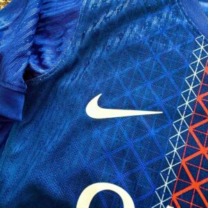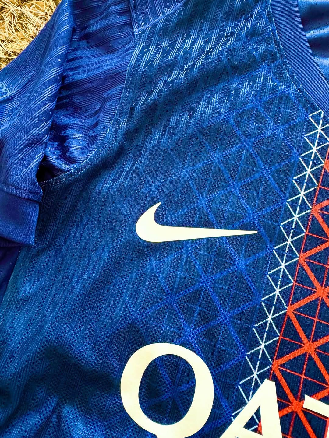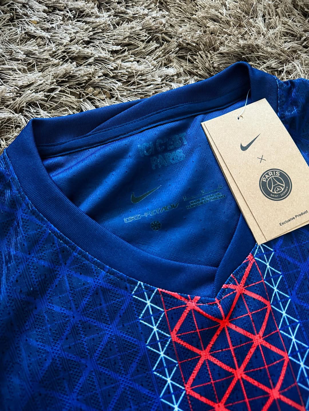 This home kit combines tradition and modernity. The vertical red stripe and gradient details make it instantly recognizable while giving a contemporary touch. Fans and players alike can proudly showcase their PSG pride.