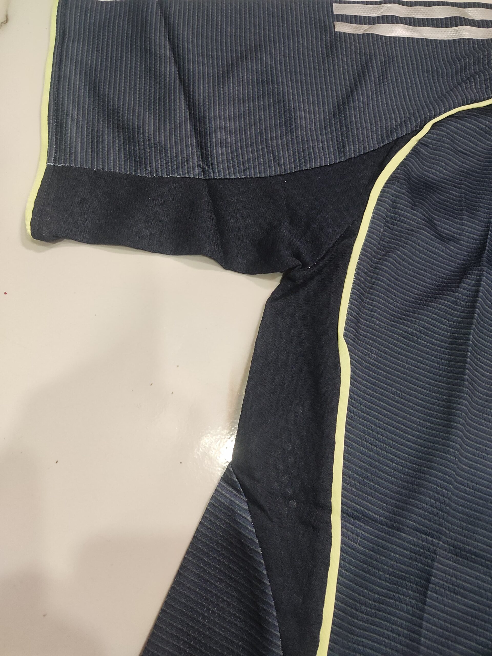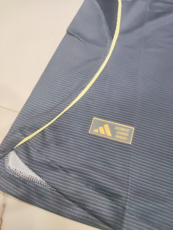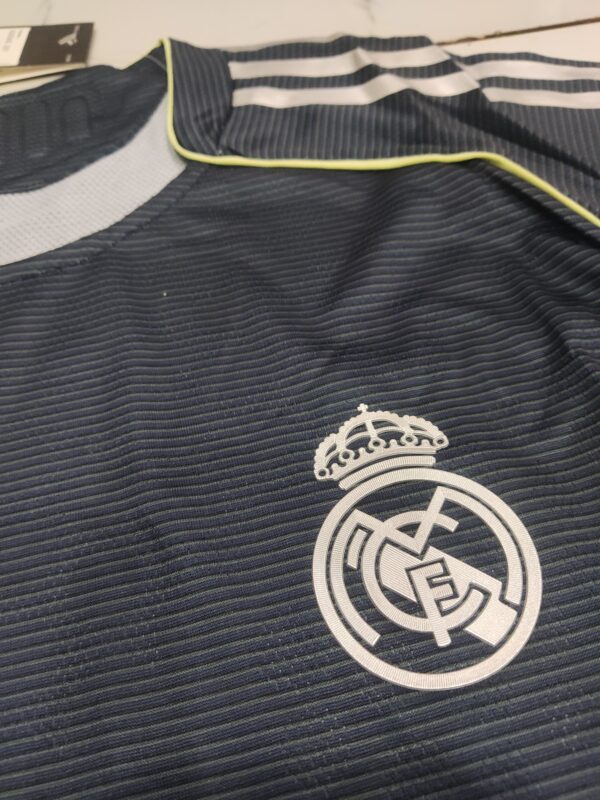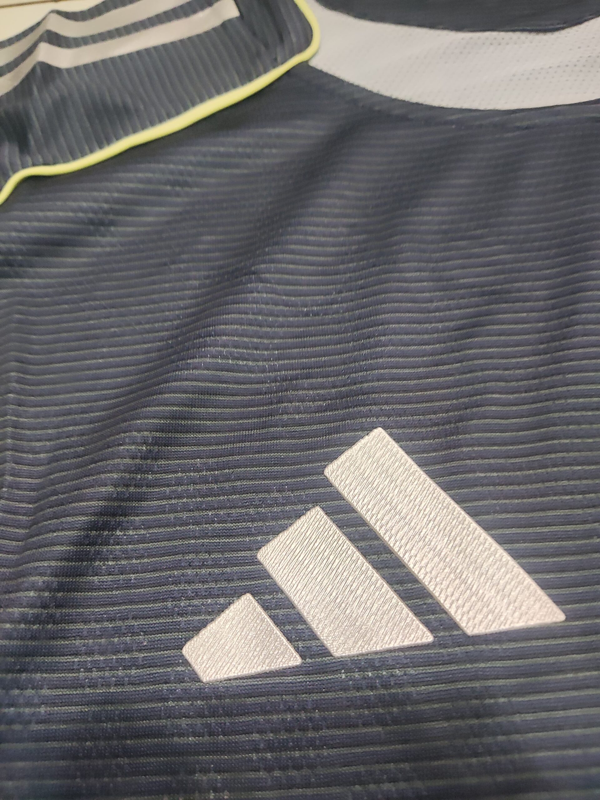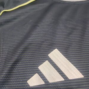 The 25/26 Away Kit blends elegance with innovation. The dark navy backdrop paired with golden accents reflects Real Madrid’s identity as both champions and style icons. Whether on the pitch or in everyday wear, this jersey stands out with sophistication.